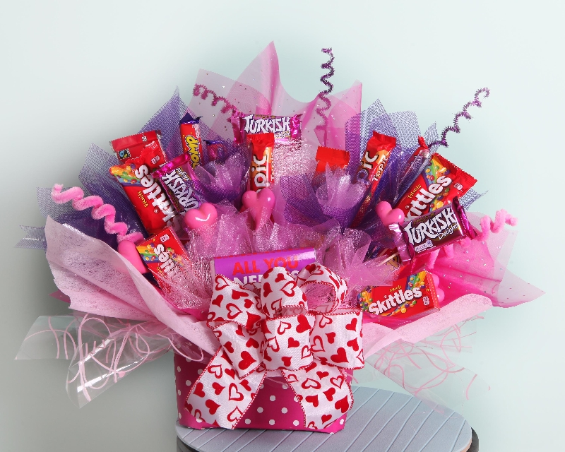 Treat someone with a personalised gift made up of their favourite treat these stunning centrepiece arrangements are ideal for Christmas centre pieces, Valentine’s Day gifts, Mothers day, Fathers Day, Birthdays, christenings, hen parties or weddings, almost any event you can think of... This s gift boxes are filled with a variety of confectionary, they consist of well known branded chocolate and sweets. Your gift will be presented in gift box decorated with hot pink sheer organza and pink hearts for decorations then to put that finishing touch to this fabulous bouquet will arrive wrapped in crisp, clear cellophane, and they are decorated with elegant ribbons and matching bow.