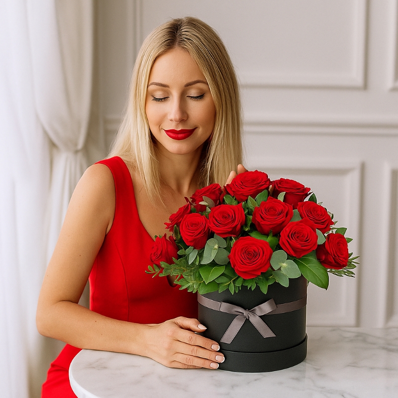 Arranged with lush green foliage and presented in a sleek black hat box, this luxurious design offers effortless sophistication and lasting beauty. Thoughtfully crafted and beautifully balanced, it’s a gift that makes a powerful impression without saying a word.