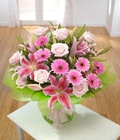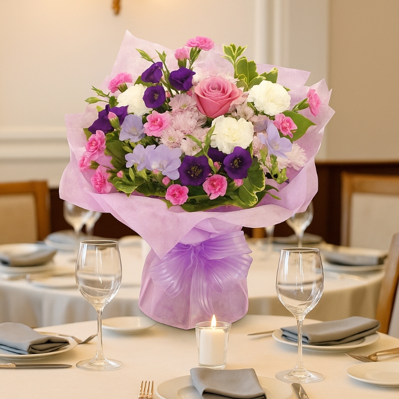 The Marbella Bouquet is a beautifully elegant pastel arrangement showcasing blush pink roses, soft pink gerberas, delicate carnations, fresh white chrysanthemums, and lush greenery. Hand-crafted with care, this luxury bouquet blends gentle tones and fresh textures to create a soft, uplifting, and stylish floral design. Its dreamy pink-and-white colour palette makes the Marbella Bouquet a favourite for customers searching for pink bouquet delivery, pastel flowers, pink roses, and luxury bouquets in Luton and Houghton Regis. Wrapped in pretty pink luxury paper and finished with a decorative bow, it offers a charming presentation perfect for gifting. Aqua Pack Bouquet. A great idea for a gift, no need to find a vase as it is delivered in a box/bag with water! Simply place and enjoy. Ideal for birthdays, anniversaries, new baby celebrations, thank-you gifts, get-well wishes, and all occasions where soft elegance is desired, the Marbella Bouquet delivers refined beauty and heartfelt sentiment. Professionally arranged in wet floral foam, the Marbella Bouquet arrives fully hydrated and ready to enjoy—no vase required. Its long-lasting freshness and modern pastel style make it a stunning choice for any home or special moment.