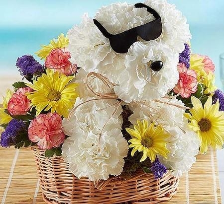 this party animal is hand-crafted from white carnations and pops of colorful blooms all around. Cheerful and bright, it makes a truly original centerpiece for every celebration.