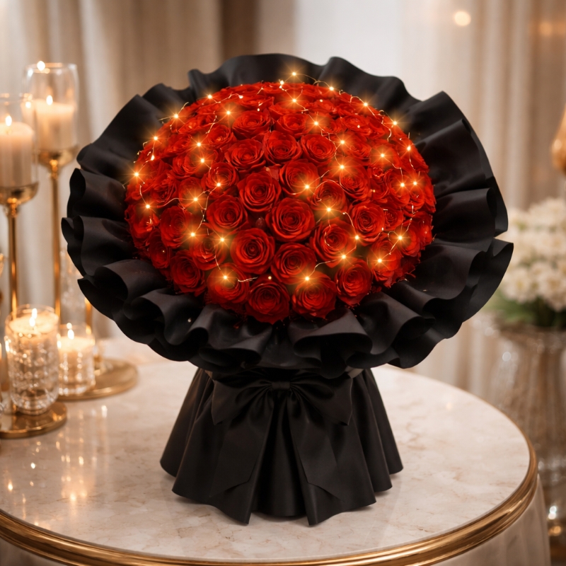 Immerse your Valentine’s Day or anniversary in a world of romance with Forever in RedForever in Red —a breathtaking bouquet of 50 premium red roses, designed to captivate hearts. Each exquisite bloom is carefully selected for its rich crimson hue, velvety texture, and exceptional freshness, making this arrangement a timeless symbol of love and devotion.
