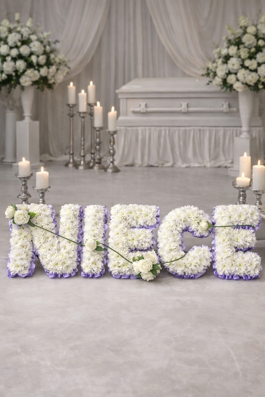 Niece” Funeral Tribute – Elegant Floral Lettering