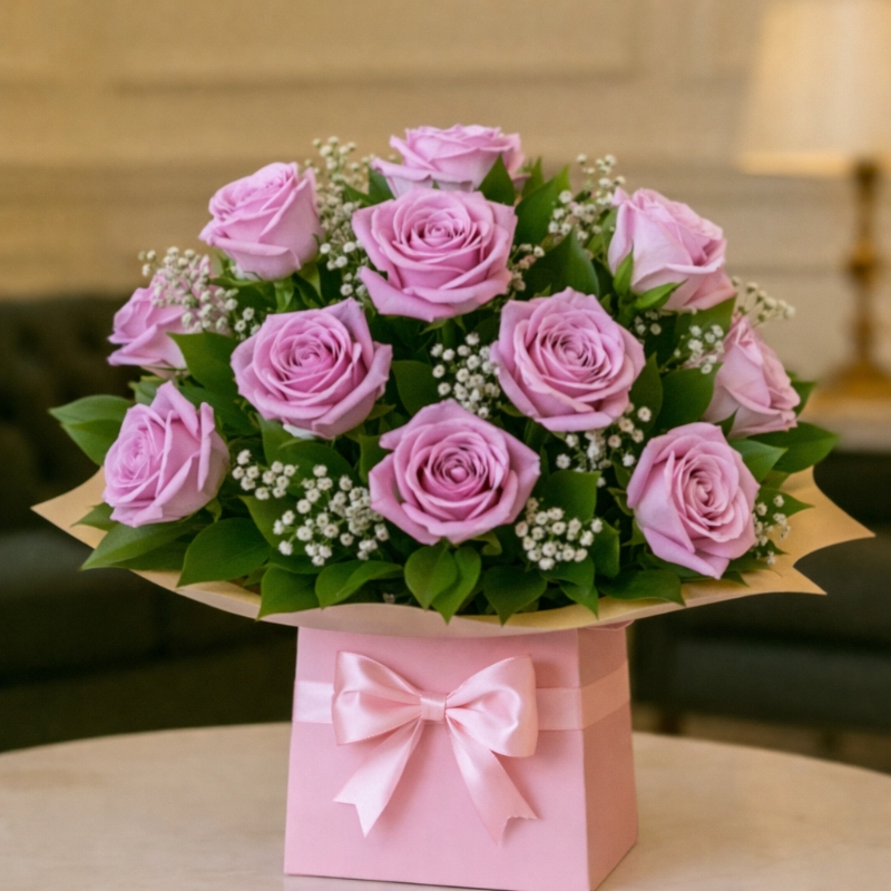 Celebrate love, romance, and meaningful moments with the Dreamy Dozen—a timeless arrangement designed to speak from the heart. Featuring 12 premium pink roses, each bloom symbolizes love, admiration, and tenderness, making this bouquet a beautiful expression of your deepest emotions.