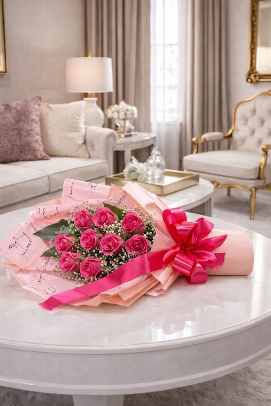 Celebrate Mum with the soft elegance of Delicate Bliss, a graceful bouquet featuring stunning pink roses delicately paired with baby’s breath and fresh greenery. Thoughtfully wrapped in luxurious pink packaging and finished with a bold satin bow, this arrangement is designed to make her feel truly special.