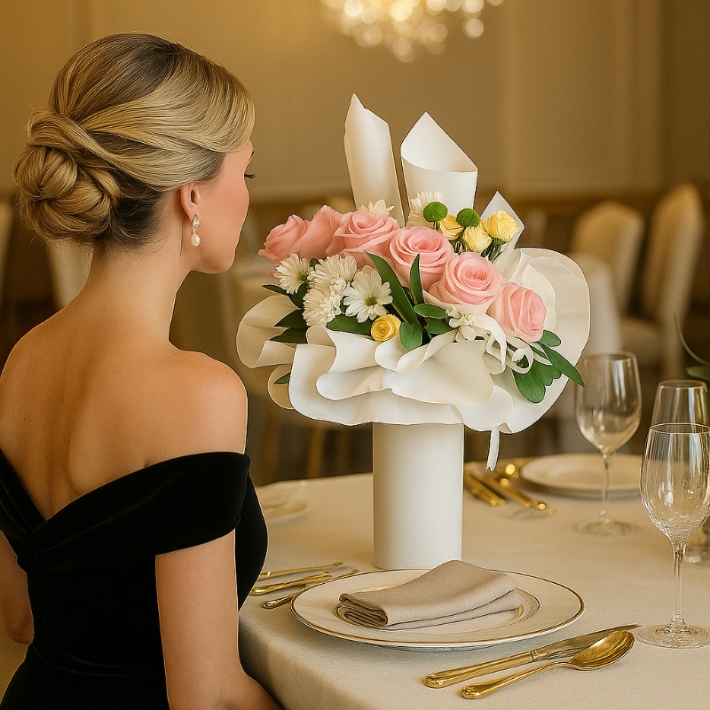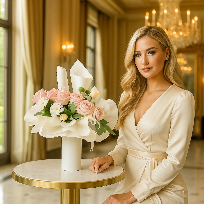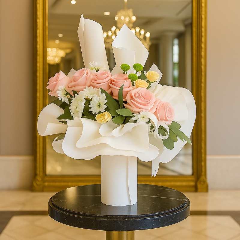 Professionally arranged in wet floral foam, the Gentle Grace Bouquet arrives fully hydrated and ready to display—no vase needed. This ensures long-lasting freshness, making the bouquet both beautiful and practical. Wrapped in modern white luxury paper with premium finishing touches, it offers a polished and high-end presentation that feels truly special.